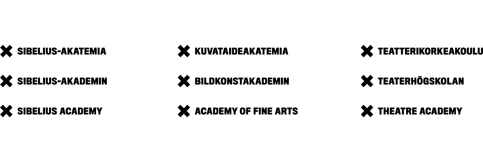 The “X Academy” signature can never be used without the Uniarts Helsinki logo.