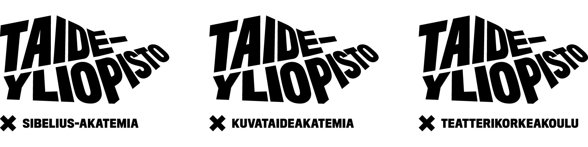 Uniarts Helsinki and its three academies have a common visual identity that allows us to independently use the Uniarts Helsinki umbrella brand and the three academy sub-brands and names. The identity is characterised by individually designed logotypes/wordmarks. The common denominator for the visual identity is the X sign.