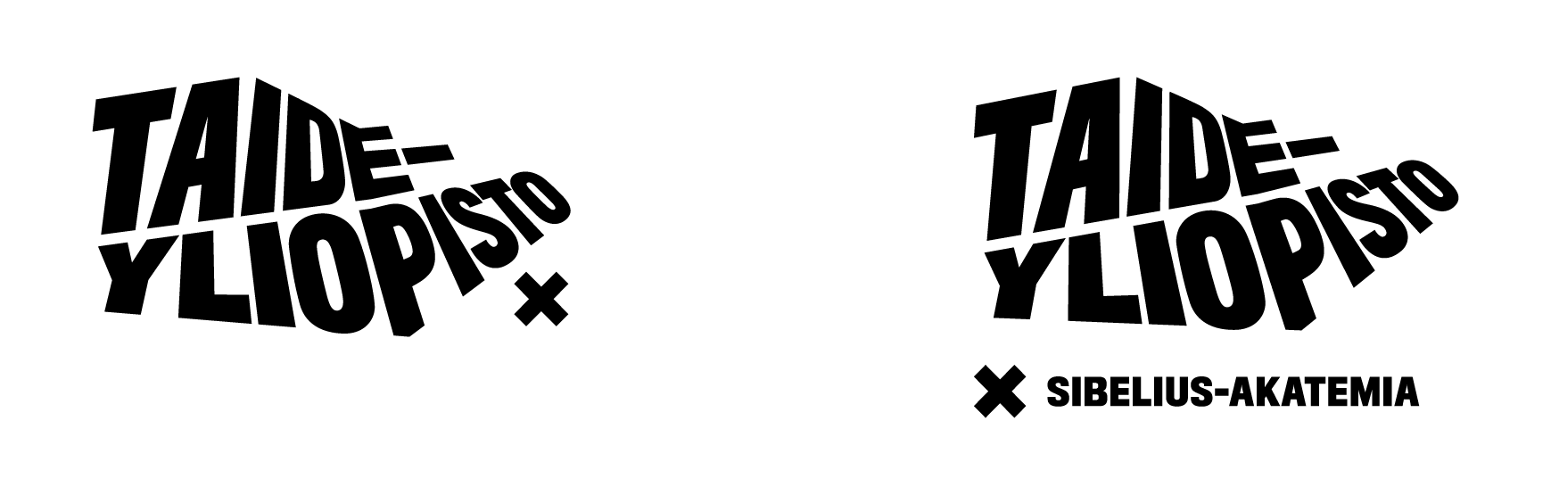 Uniarts Helsinki’s and the academies’ logos consist of a logotype and the X sign.