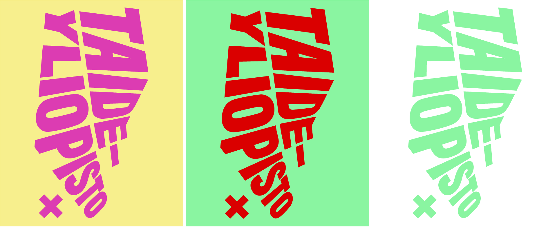 Tällaisia ovat Taideyliopiston visuaalisen ilmeen tunnukset, värit ja typografia. Täältä löydät näille myös käyttöohjeet ja latauslinkit.